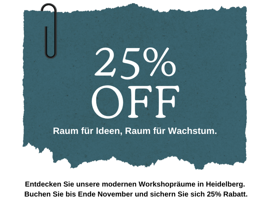 Unser Workshopräume bieten die perfekte Atmosphäre für Workshops und Meetings mit bis zu 30 Personen. Voll ausgestattet mit Whiteboards und Lego Serious Play, stehen wir auch für Catering oder die Vermittlung eines Coaches zur Verfügung.